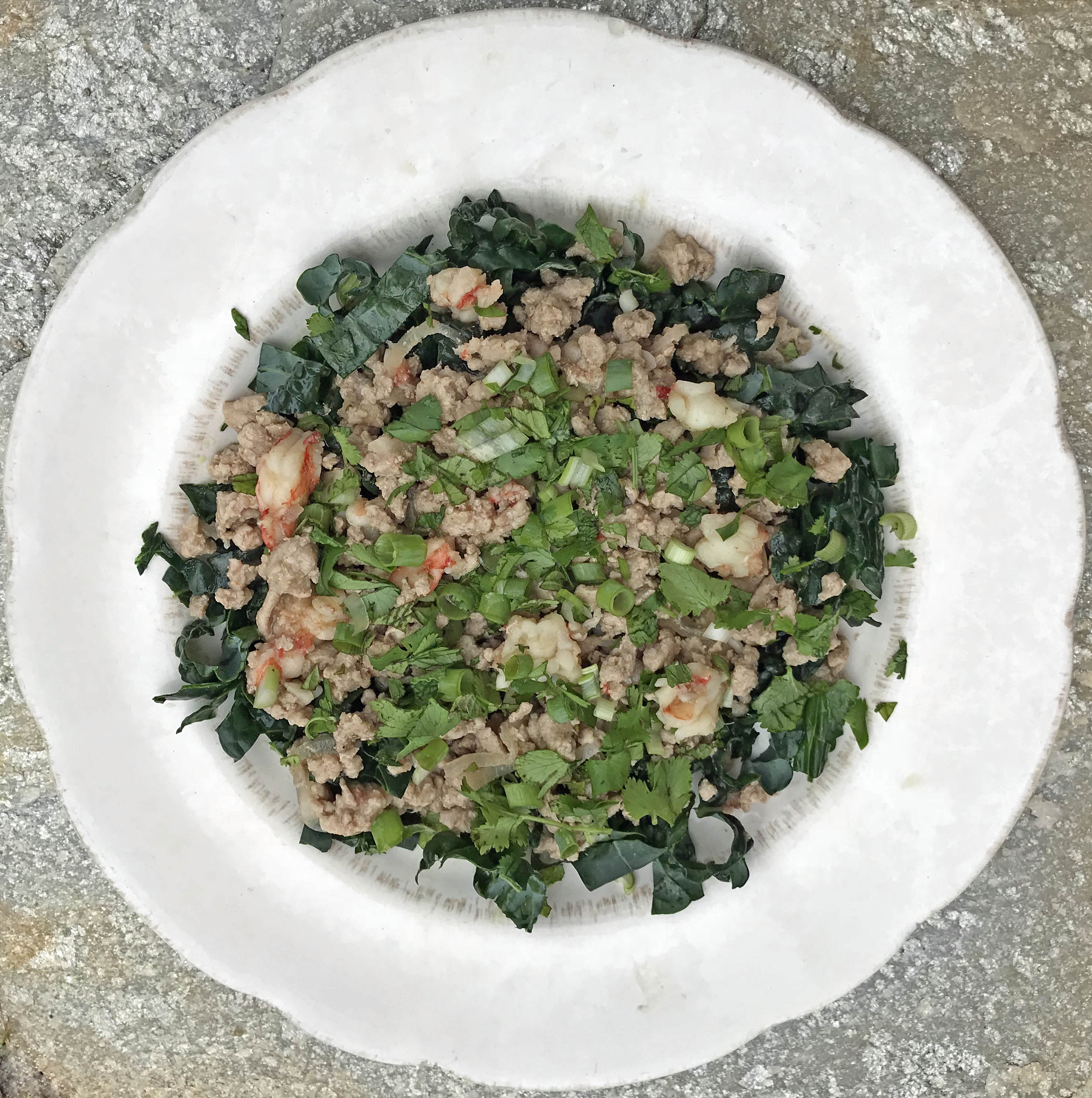 Shrimp and Chicken Larp with Kale